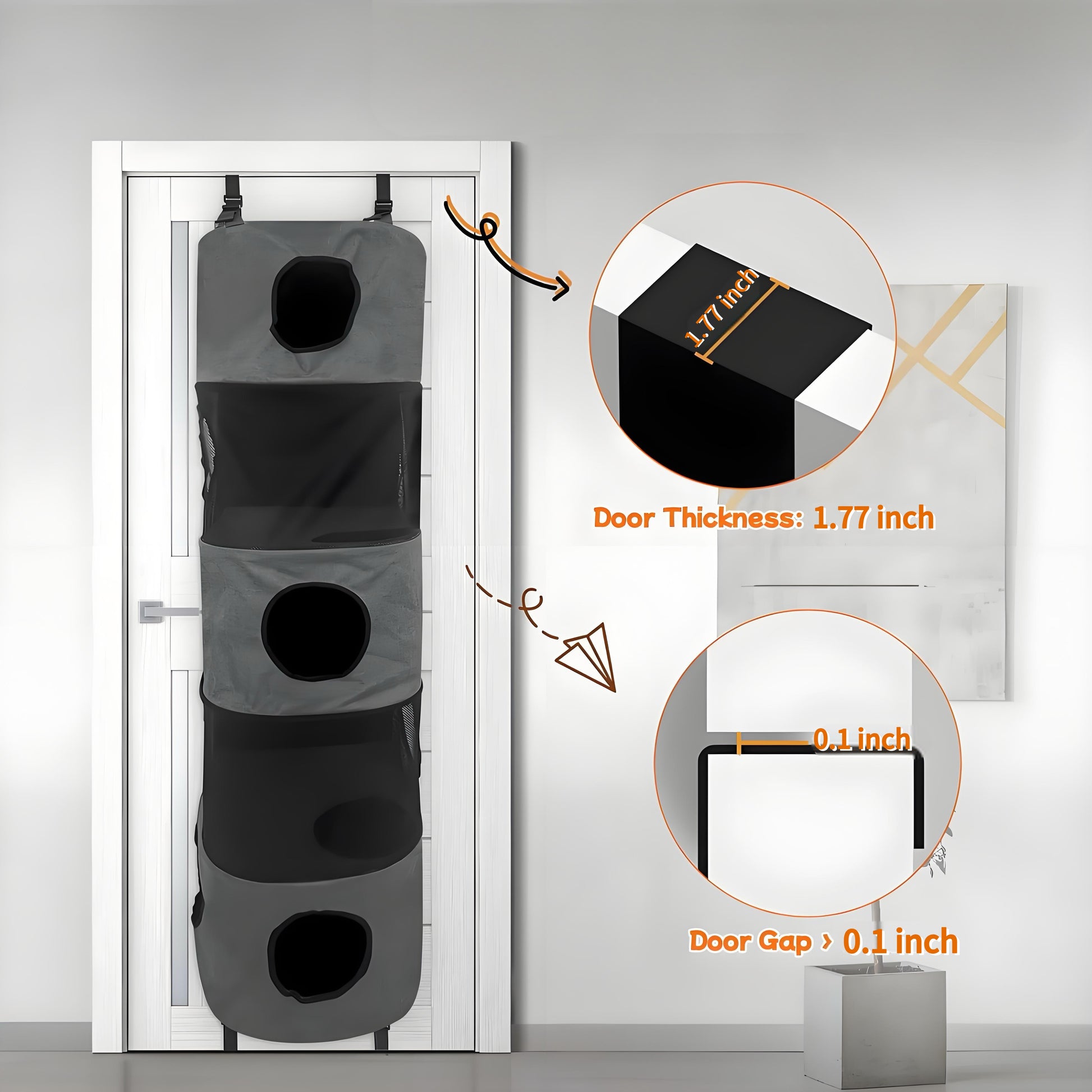 - 5-Level Over the Door Cat Tree Design for multi-cats family, and allows cats to easily traverse between different floors.